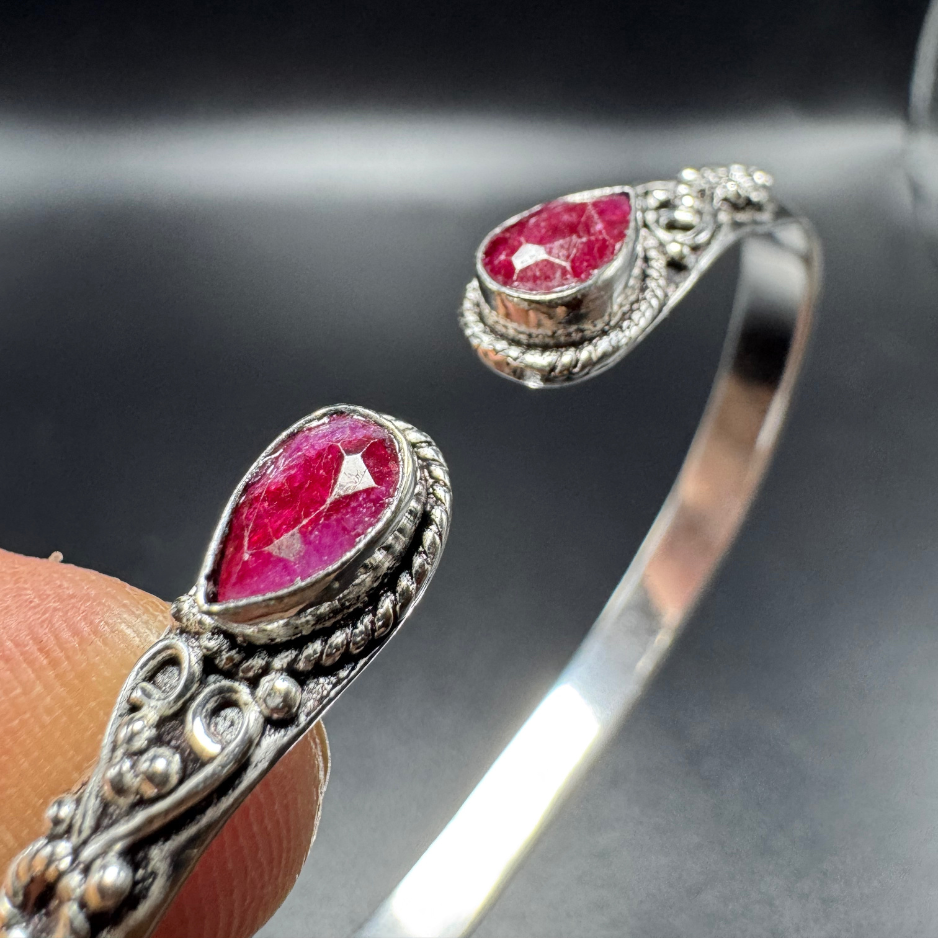 Bracelet indien argenté rubis